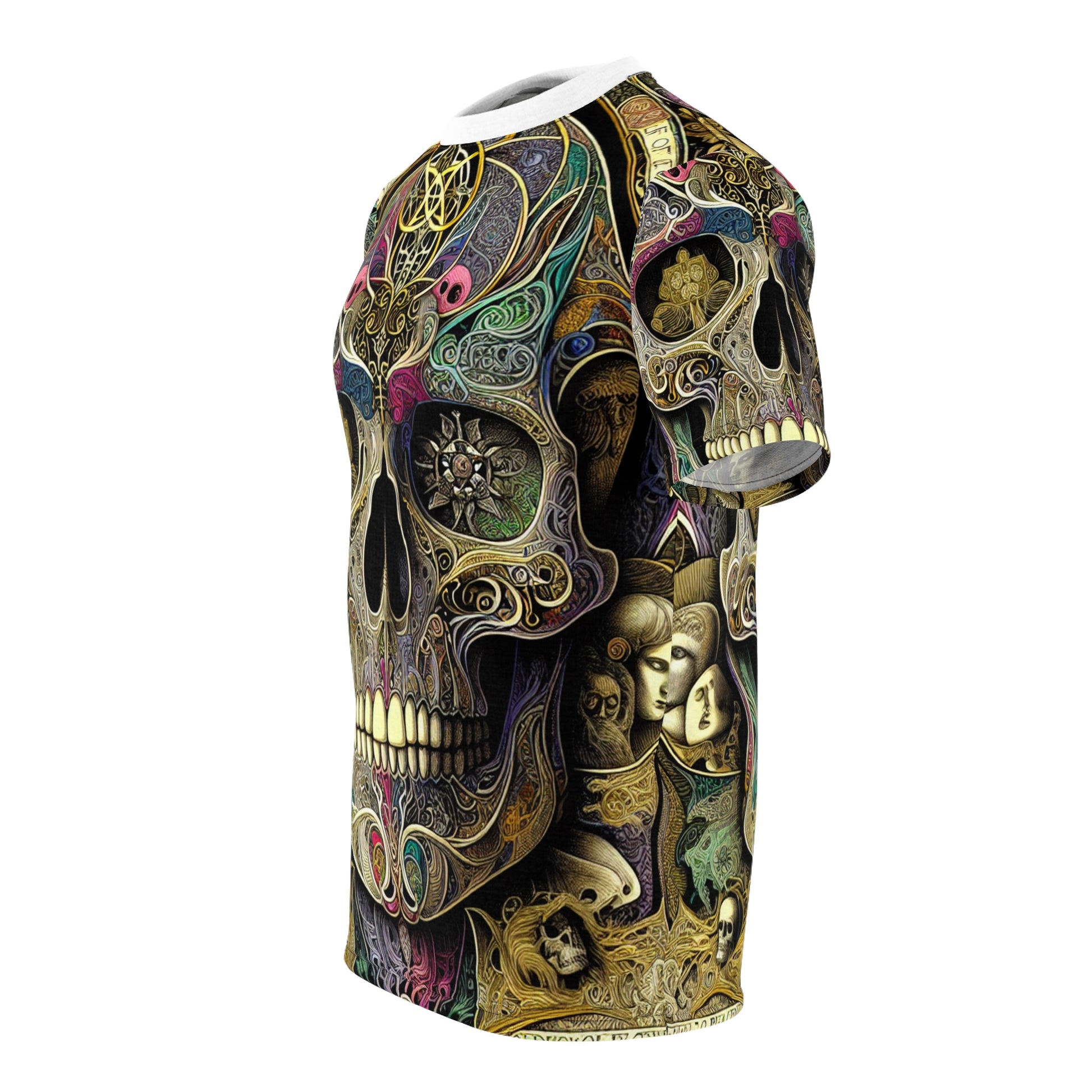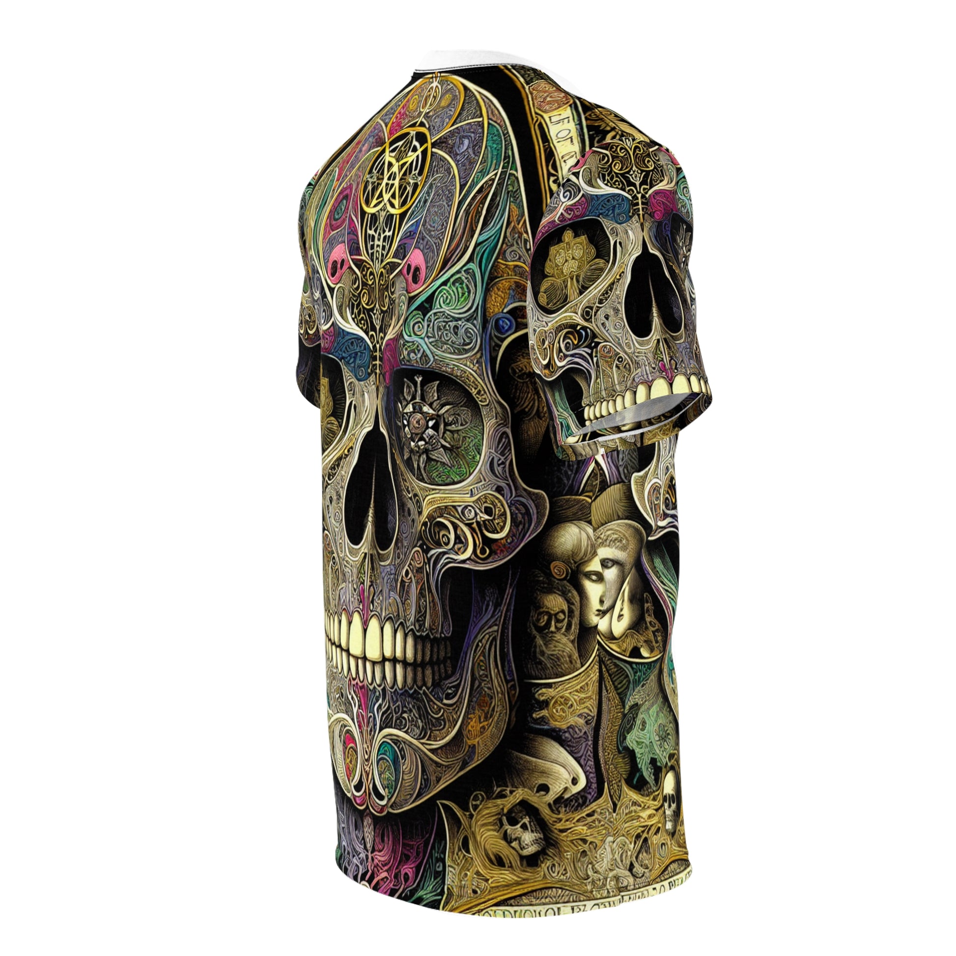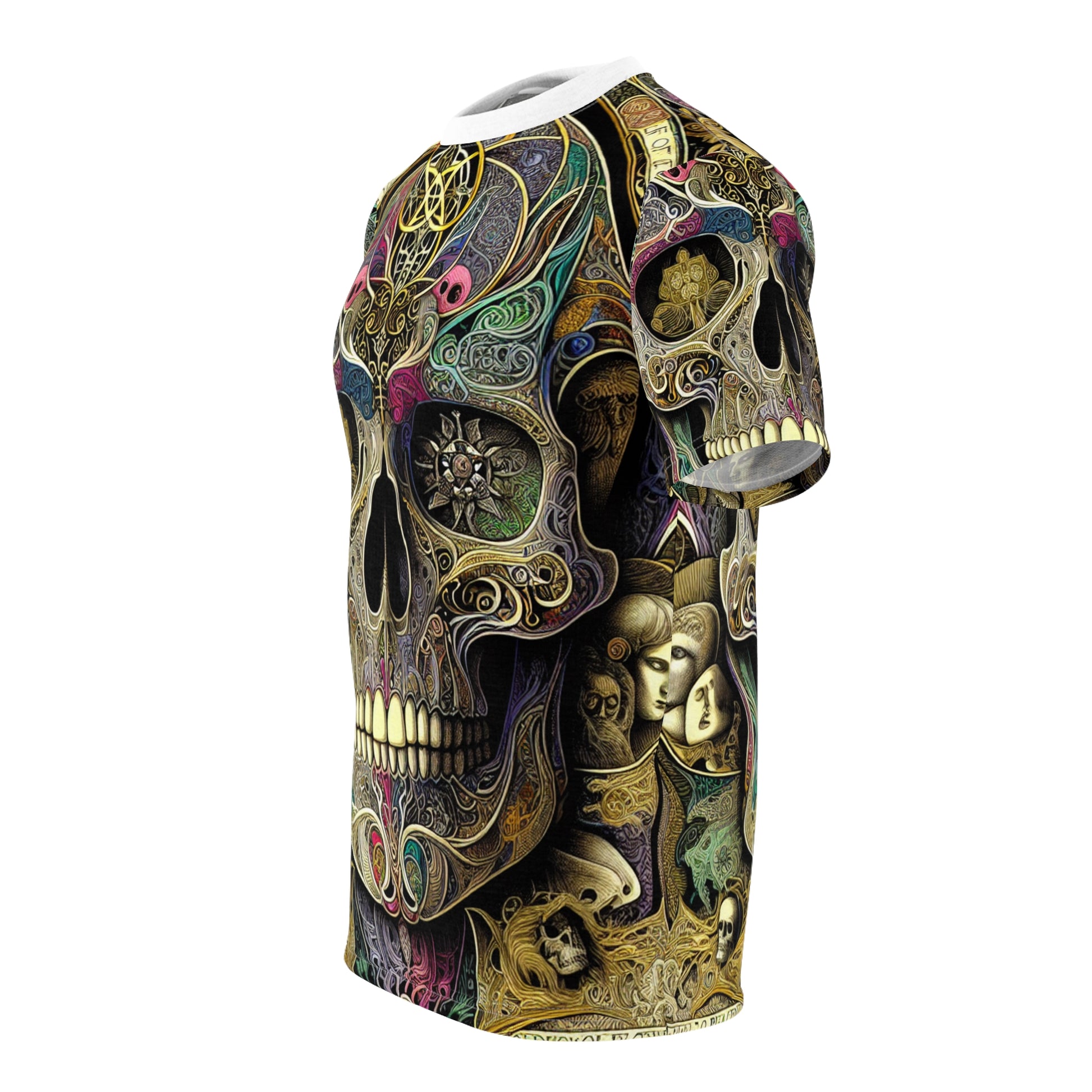 Discover the Skull Island Dreams tee - a confluence of artistic brilliance and spiritual symbolism. Revel in the fusion of Dürer's intricate skull, adorned with motifs reminiscing Klimt and Matisse. Surround yourself with biblical scenes and motivational phrases in the styles of Giotto and Caravaggio. Embrace a color scheme merging Expressionism and Impressionism, encapsulating strength, faith, and artistic diversity.