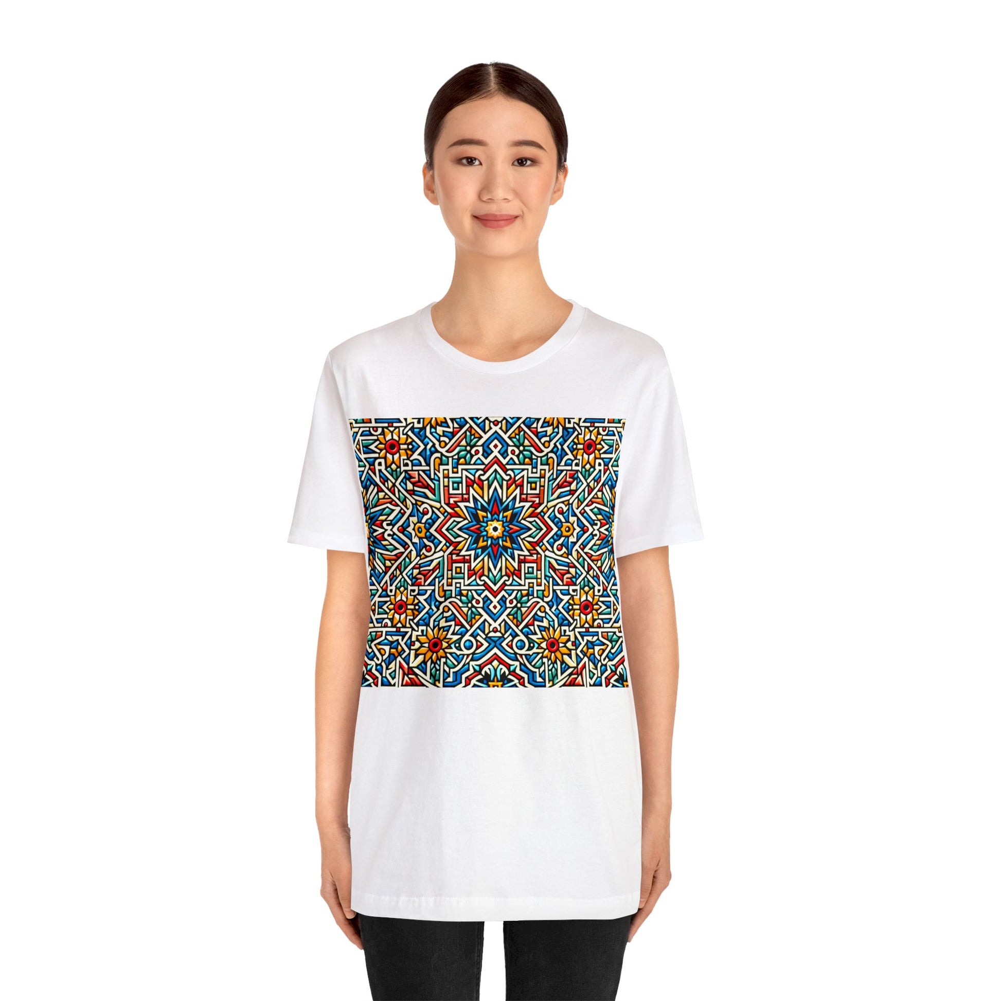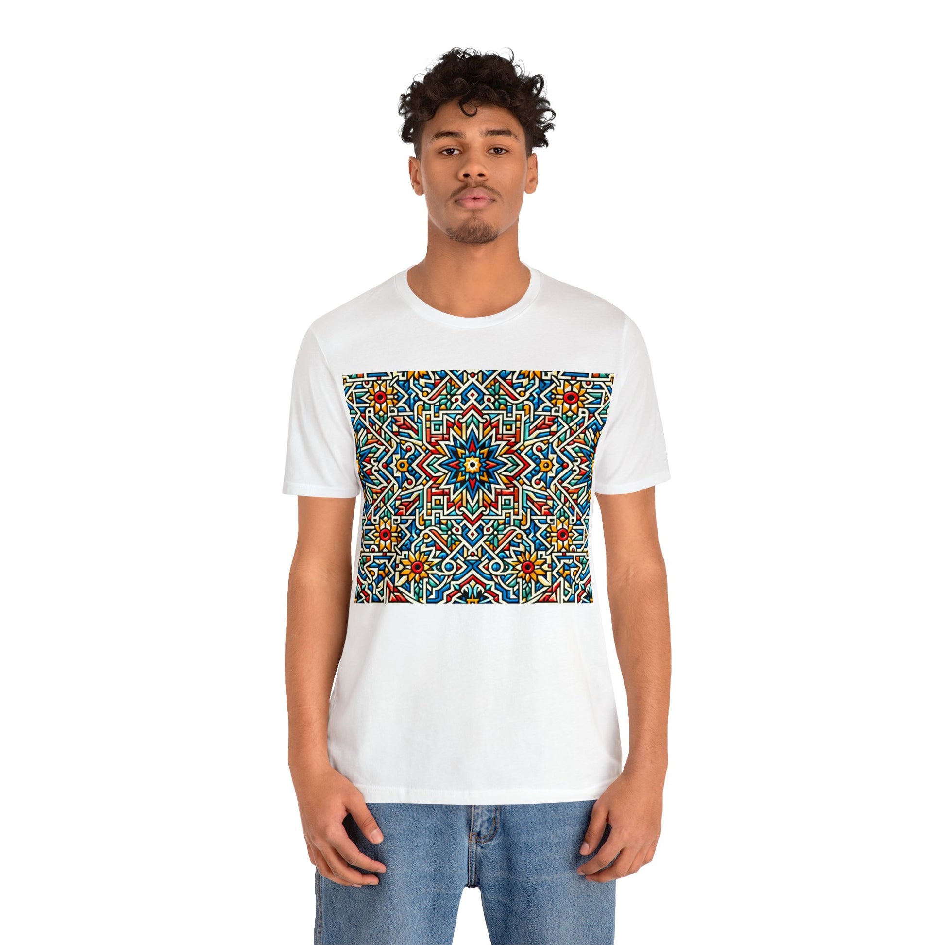 This #OwenJones designed 100% cotton t-shirt is the perfect summer staple. It features a vibrant pattern and artistic painting that will add the perfect pop of color to any look. Featuring a relaxed fit and short sleeves, this t-shirt is easy to style and comfortable to wear. #ShortSleeve #VibrantColors #SummerStyle #OwenJonesArt #TShirt #Comfortable #FashionForward #Design #SummerFashion #PatternDesign #CoolPrints